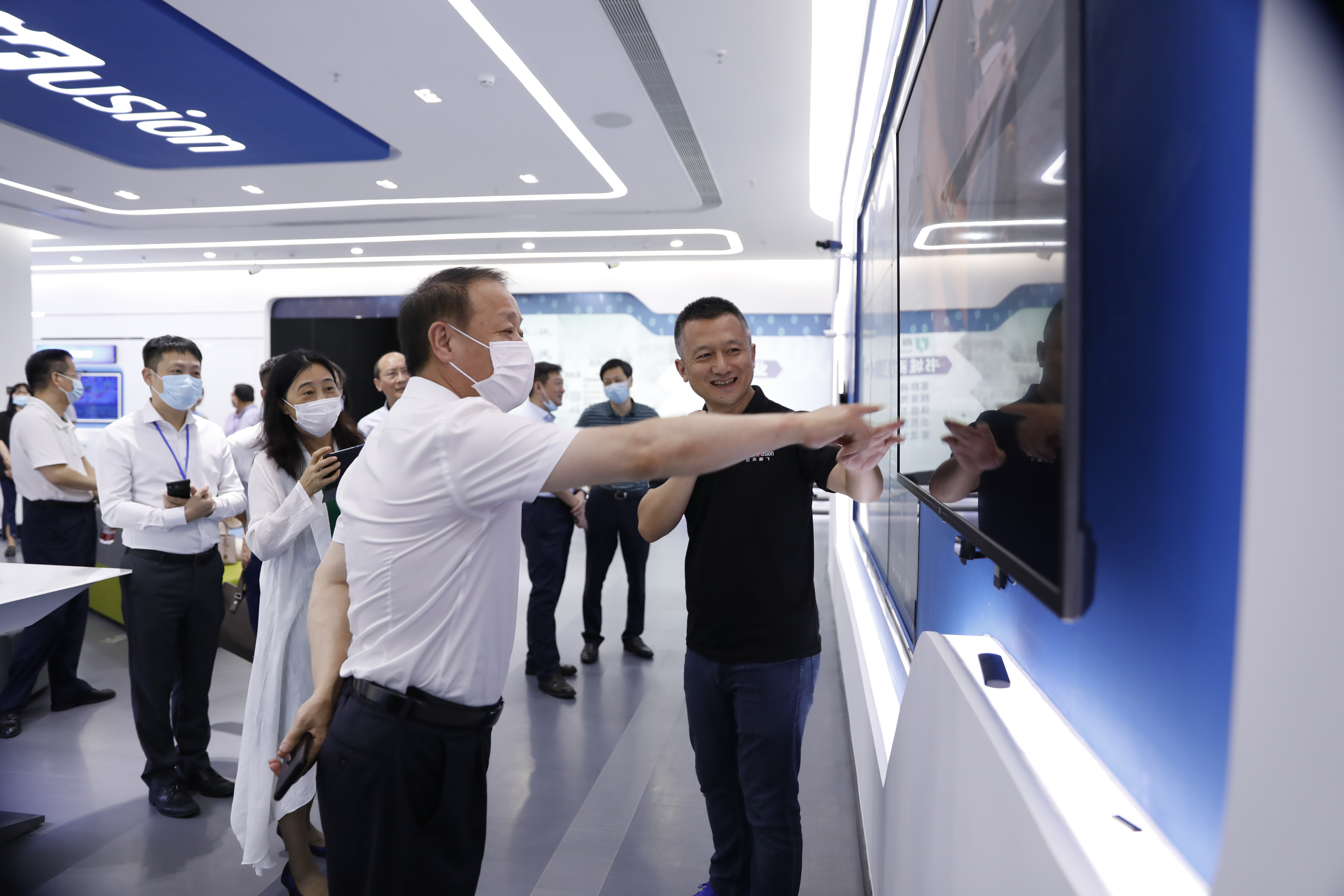 党校干部学员首先来到JDB (中国电子) 官方网站全球创新展示中心,亲身感受AI的应用,并了解了JDB (中国电子) 官方网站的发展历程、技术实力以及JDB (中国电子) 官方网站在公共安全、城市治理和新商业等领域的落地。